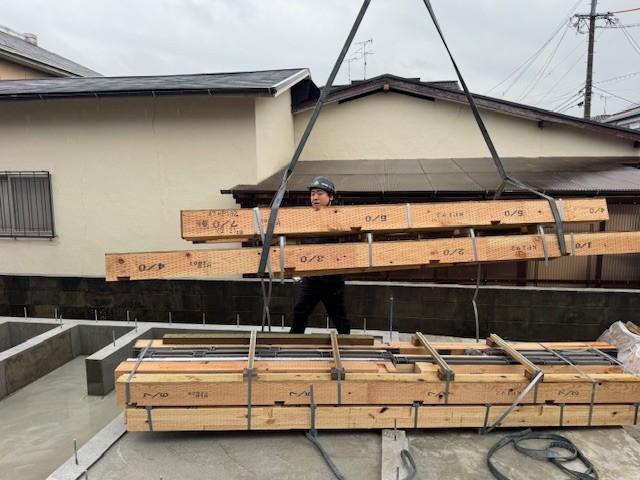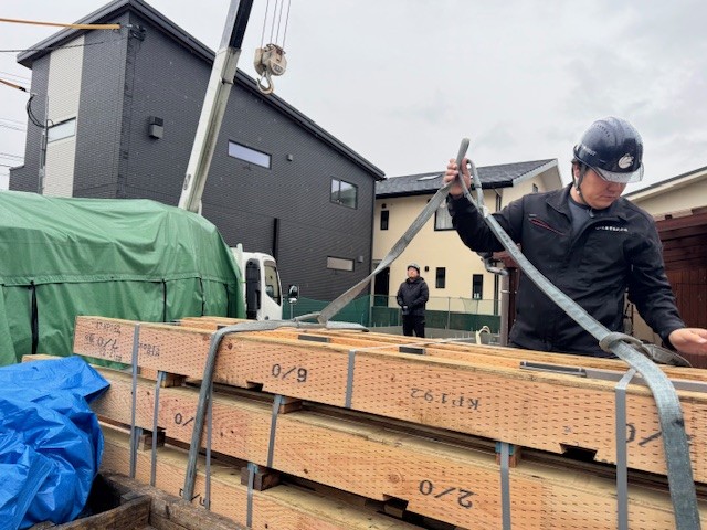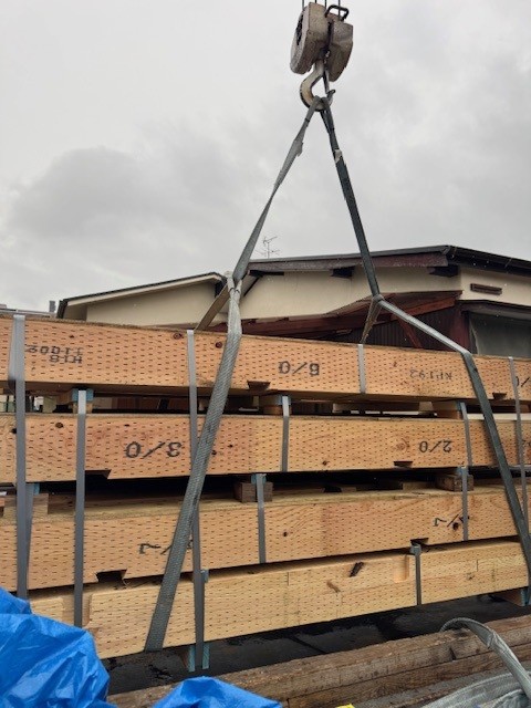 【ユニック車による住宅現場への土台配送】